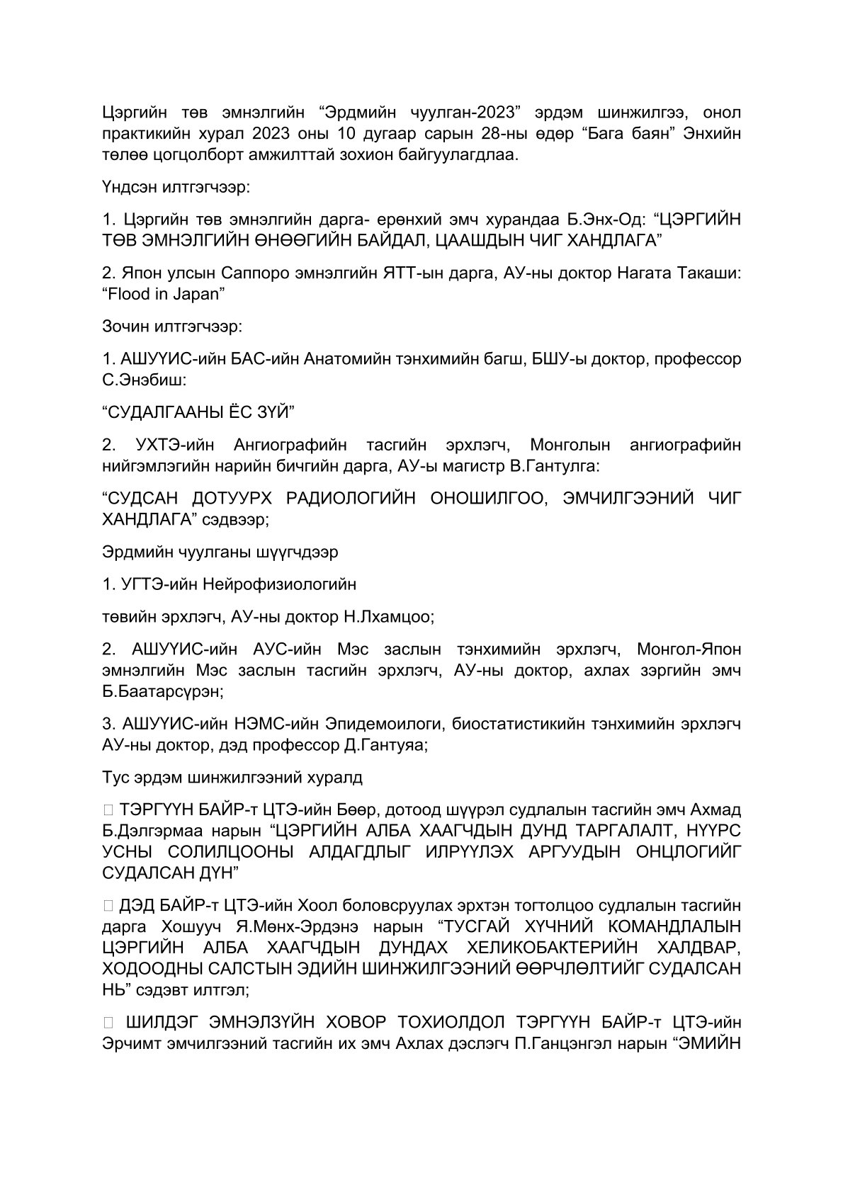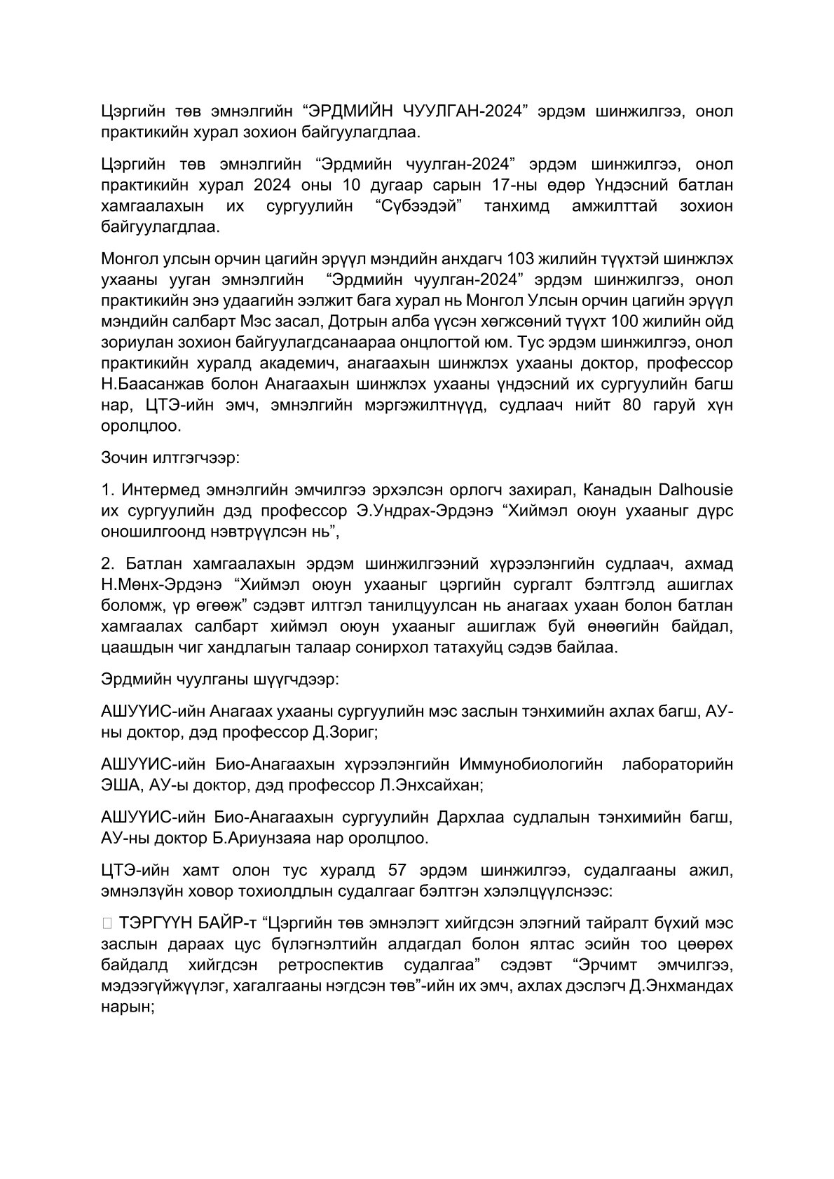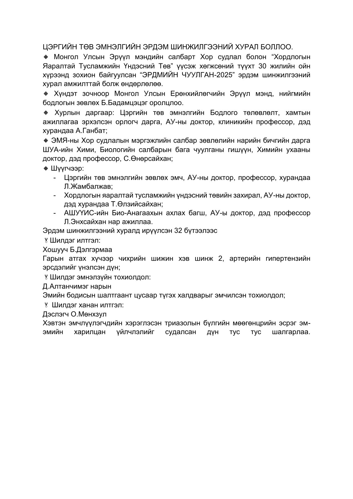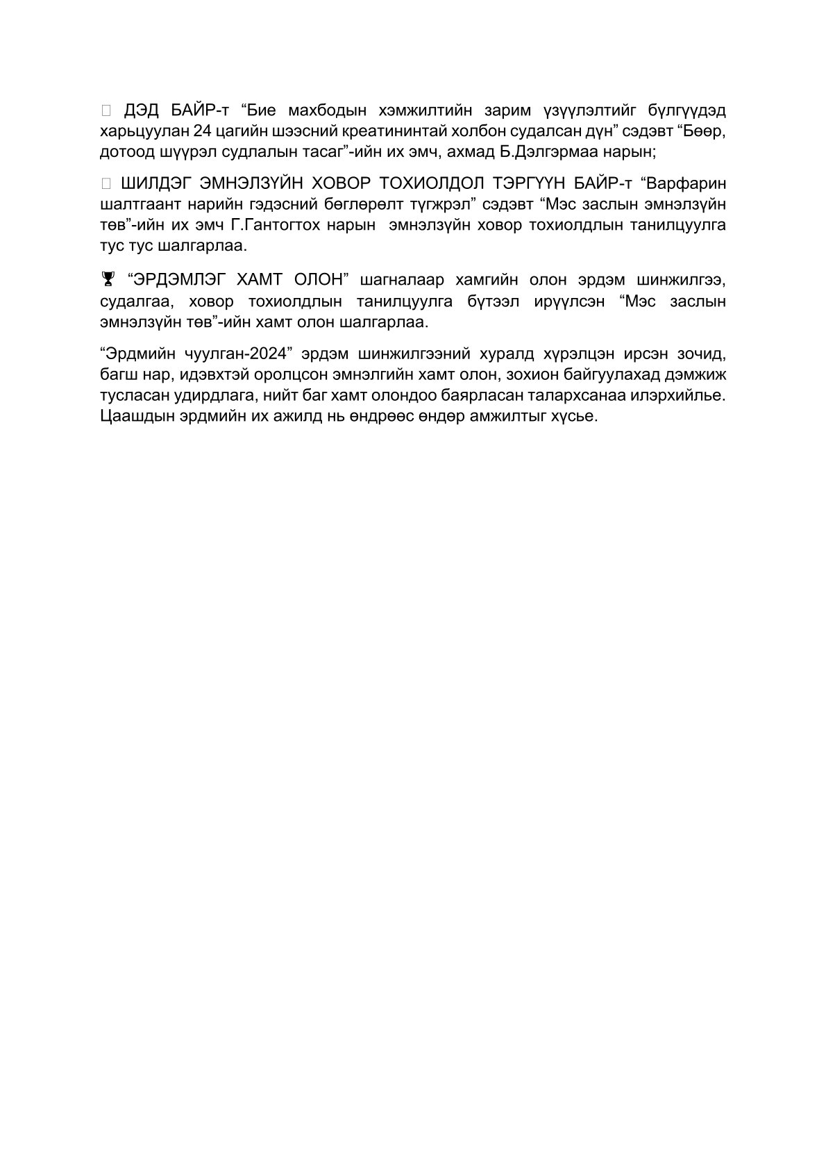 Дарга-Ерөнхий эмчийн Мэндчилгээ